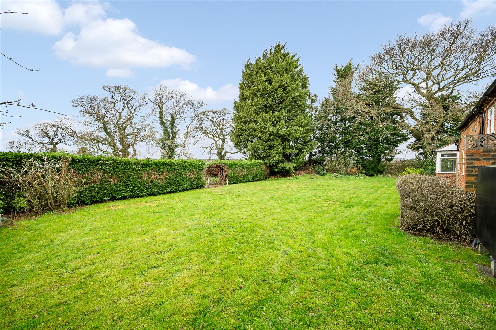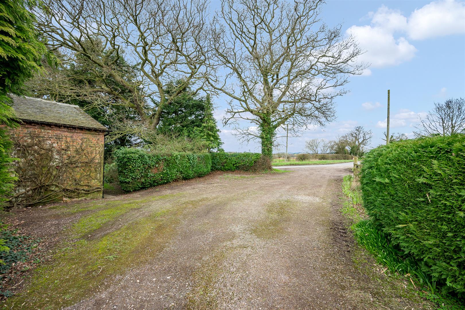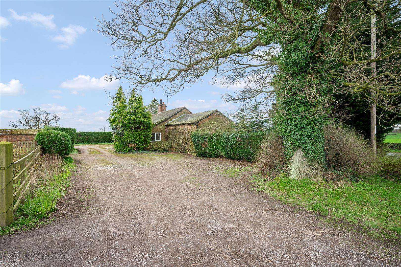 A hardcore entrance drive leads to the first of two parking areas, with the drive running the entire length of the rear of the house, leading to a larger parking and turning area for numerous cars. The gardens predominantly lie to the front, south westerly elevation and consist of a large expanse of level lawns bounded by mature hedging and specimen trees, affording a high degree of privacy. The gardens wrap around both sides of the house providing many access options. The access to the paddock is off the rear drive, with the paddock land being of old turf, bounded by post and rails and hedging.