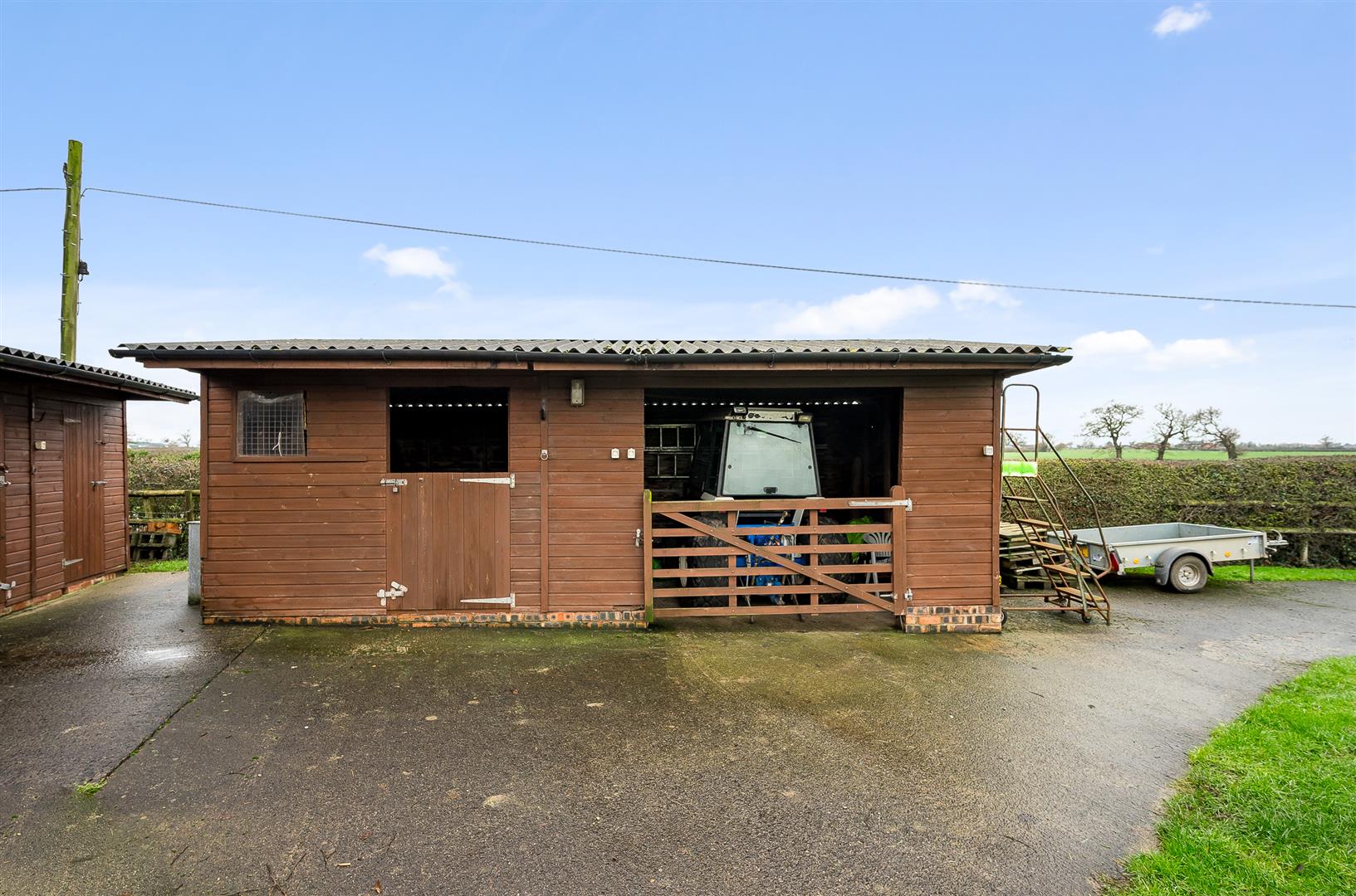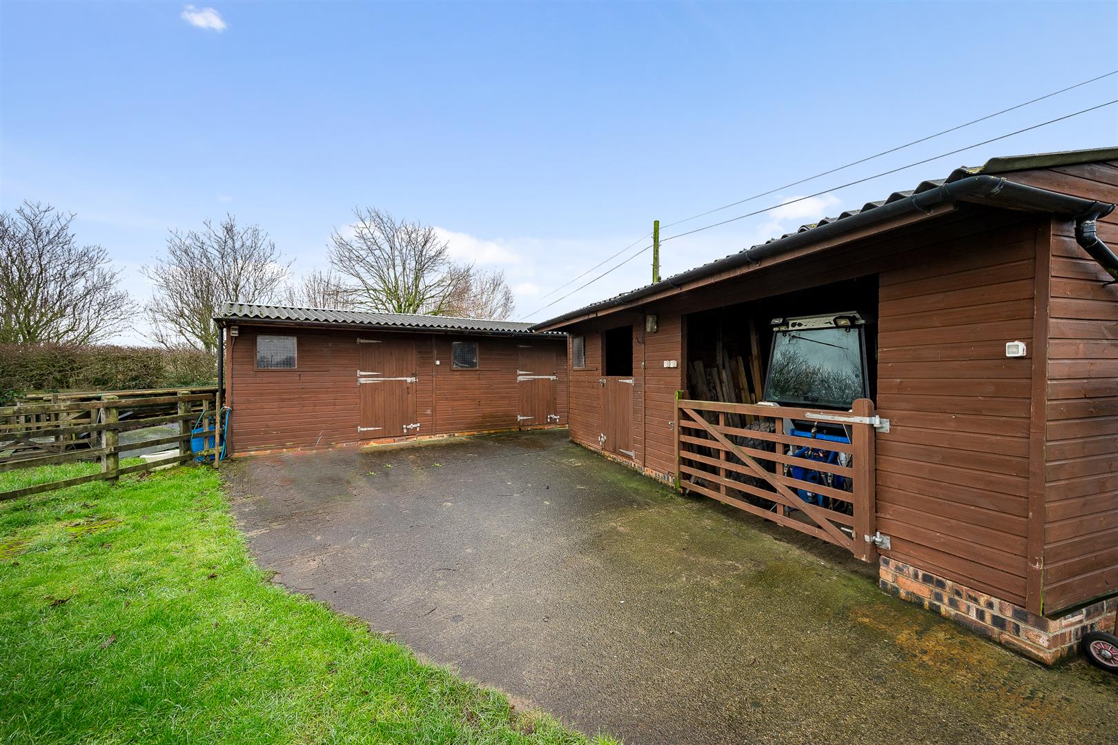 Beyond the gardens are the equestrian facilities, which include a range of timber buildings containing three stables, tack room, feed room and open sided store. There is one paddock adjoining the stables and two further fenced paddocks.