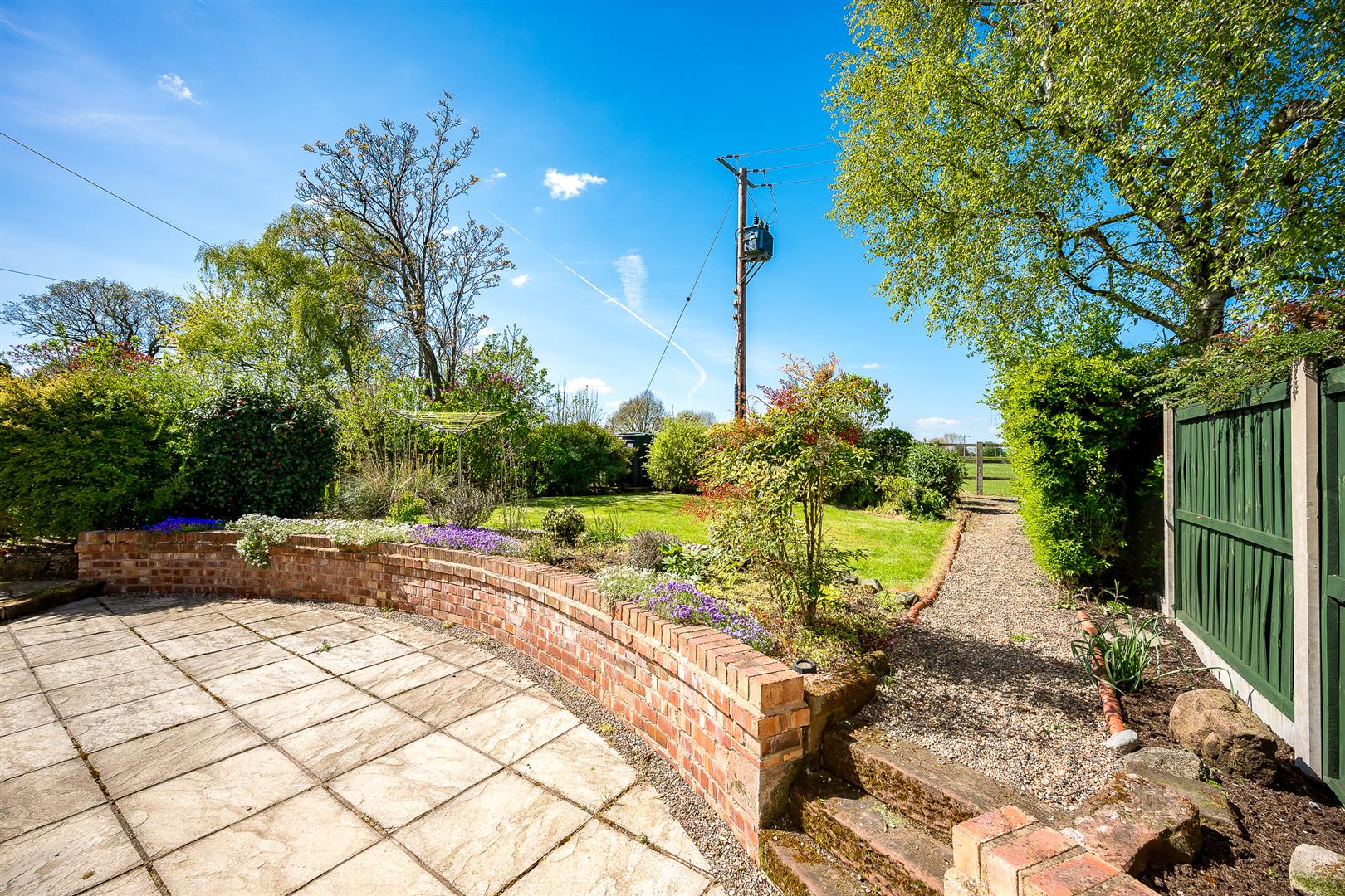 The Cottage has its own private garden that lies to the rear, accessible through the cottage via French doors from the garden room or through the main house’s garden. Abutting the garden room lies a large stone terrace / al fresco dining area with steps leading up to the gardens. There is a lawn area with pretty flower boarders and a gravel area, ideal for children’s climbing frame or the washing line.