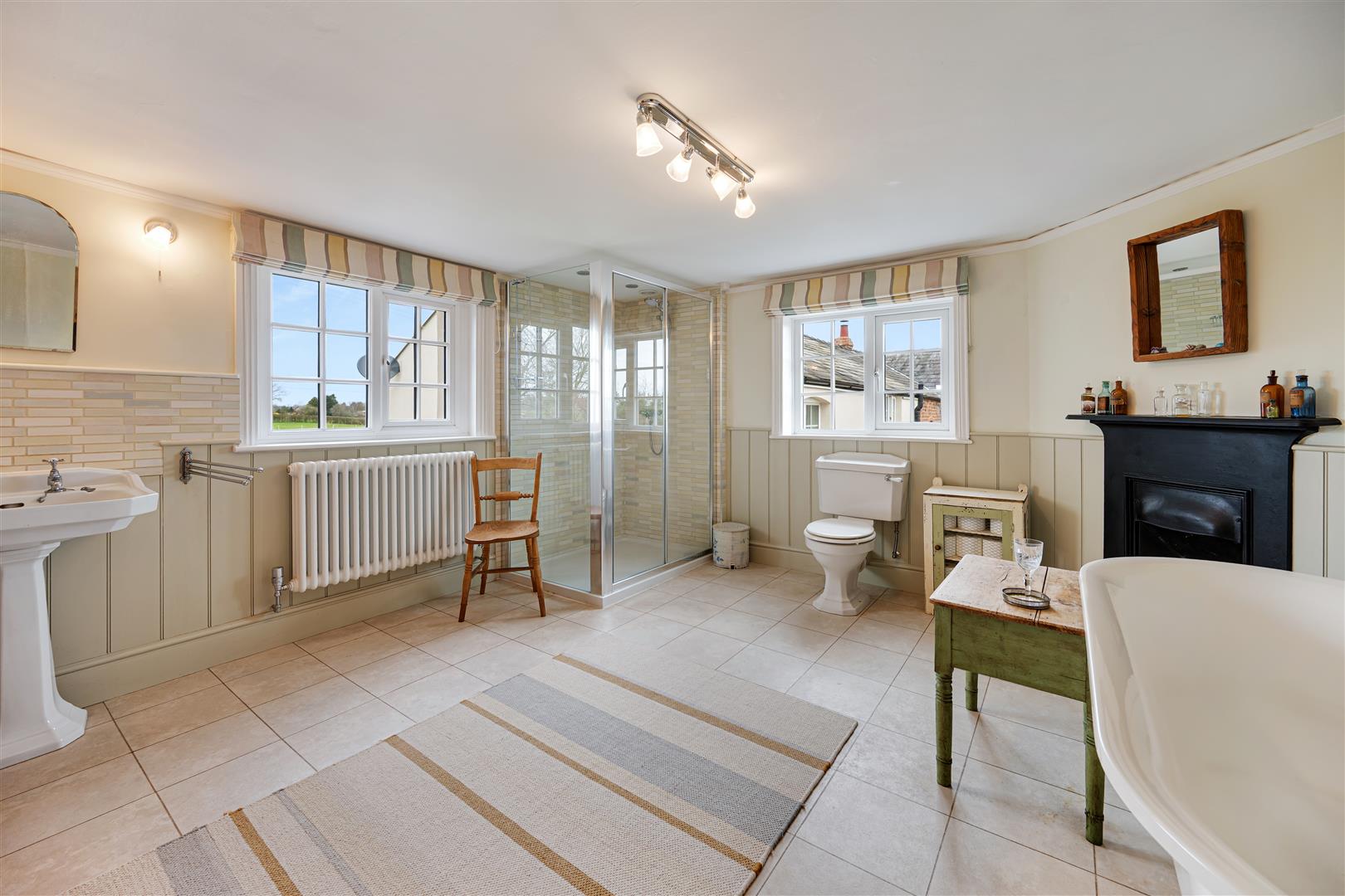The first floor is where three generously proportioned double bedrooms lie, served by a beautifully appointed family bathroom with hob grate fireplace, ball and claw footed free standing bath and a separate shower. There is an equally as impressive fully tiled family shower room. All the bedrooms have built in wardrobes, with hob grate fireplaces and one with a beamed ceiling.
