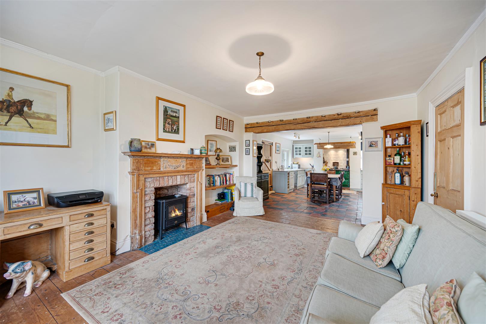 The interior lay out is ideal for modern family living with the rooms adorned with numerous period features, befitting a house of this stature. These features include attractive fireplaces to the ground and first floors, tiled flooring, solid wooden latched doors, beamed ceilings, picture rails, corniced ceilings and a staircase with wooden banisters.
