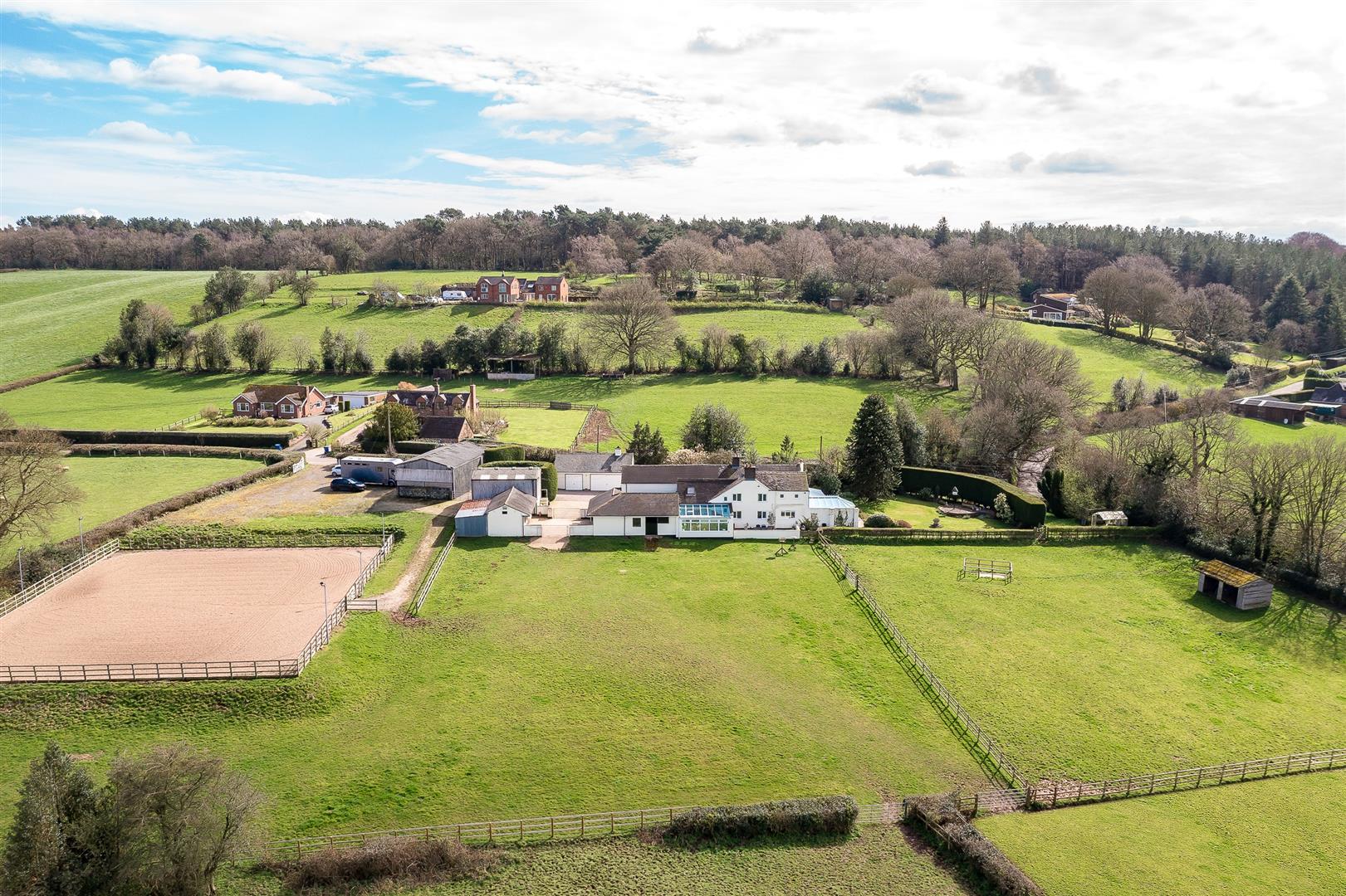 Holloway Lane Farm is located in the peaceful rural parish of Maer, a picturesque and desirable area of Staffordshire renowned for its rolling countryside, historic homes, and strong sense of community. The house is surrounded by open farmland with woodland walks nearby, making it ideal for buyers seeking a tranquil rural lifestyle within easy reach of major amenities.