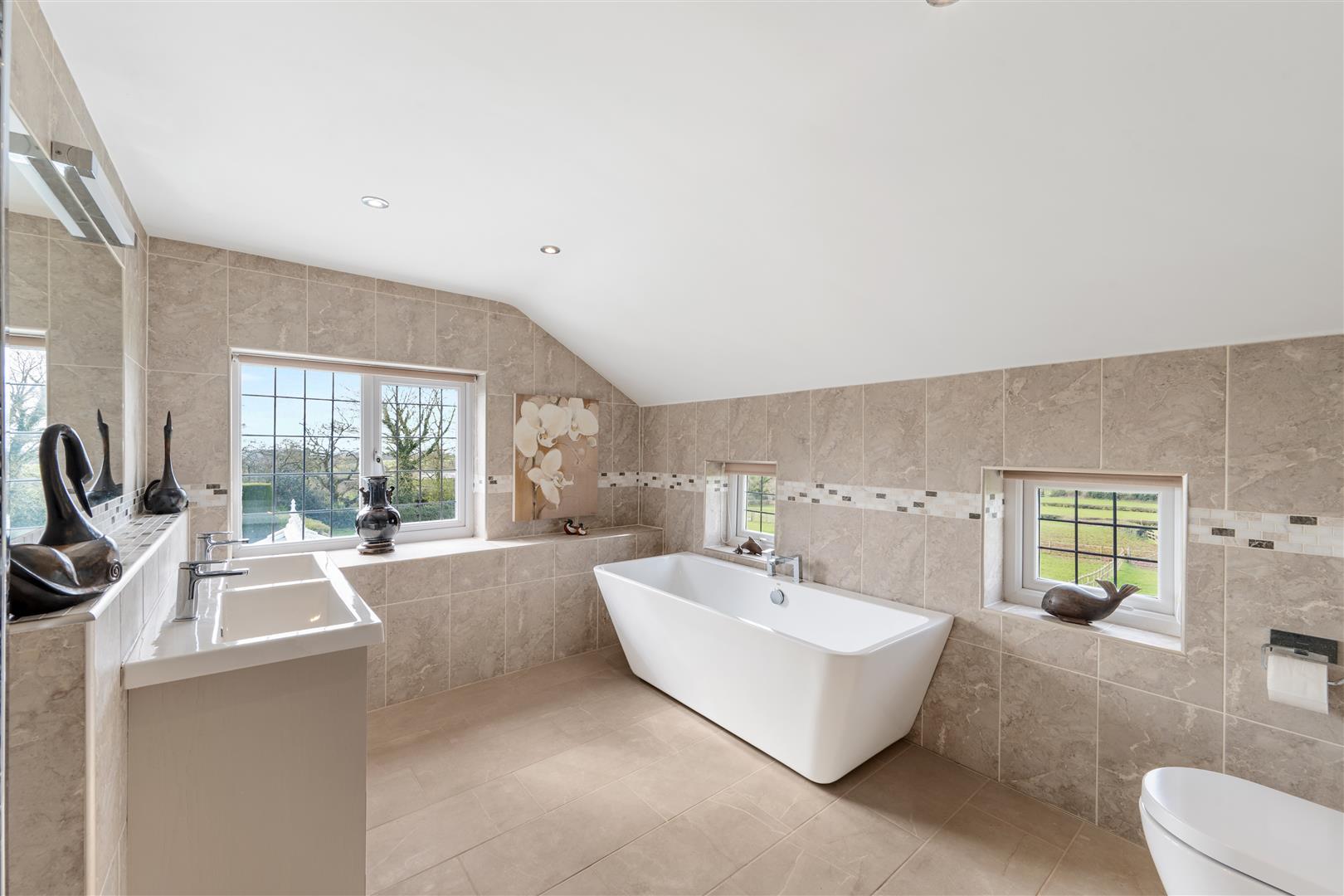 The first floor is equally as impressive with a most impressive sized principal suite with large double bedroom enjoying the views, a huge dressing room off, and a wonderful modern bathroom with separate shower with rain shower head. There are two further en suite bedrooms, both with lovely bath/shower rooms. The remaining bedroom is served by an adjoining family bathroom.