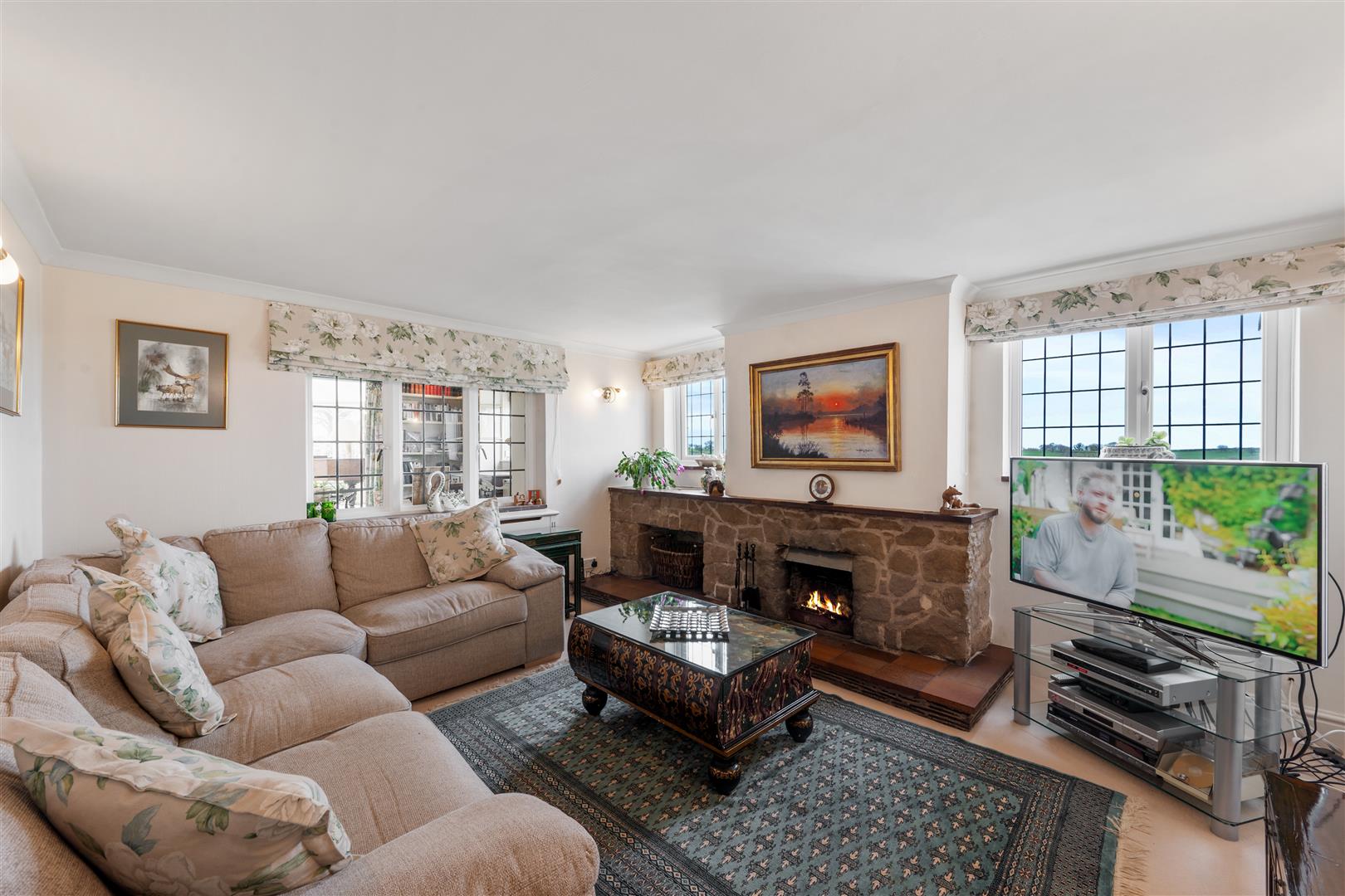This large period family home has cream rendered elevations adorned with wisteria and climbing rose, all surmounted by a tiled roof. The handsome façade sets the scene for the most attractive interior with a suite of beautifully presented, generously proportioned reception rooms, ideal for modern family living. The accommodation is flexible in nature and has the potential to hive off part of the house to form a two-bedroom annexe if required. The rooms have good ceiling height with large UPVC double glazed windows flooding the house with natural light, making the most of the views and fully enhancing the feeling of light and space.