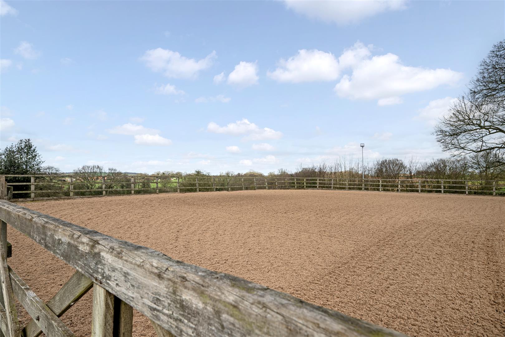 This property is ideal for the equestrian buyer from the family buyer with ponies right up to the more professional equestrian. There is a separate wider access into the equestrian facilities with large hardstanding area ideal for the storage of horse boxes/tractors etc. The large arena measures 40 x 30 m, is floodlit with sand and fibre surface, with post and rail fencing surrounding.