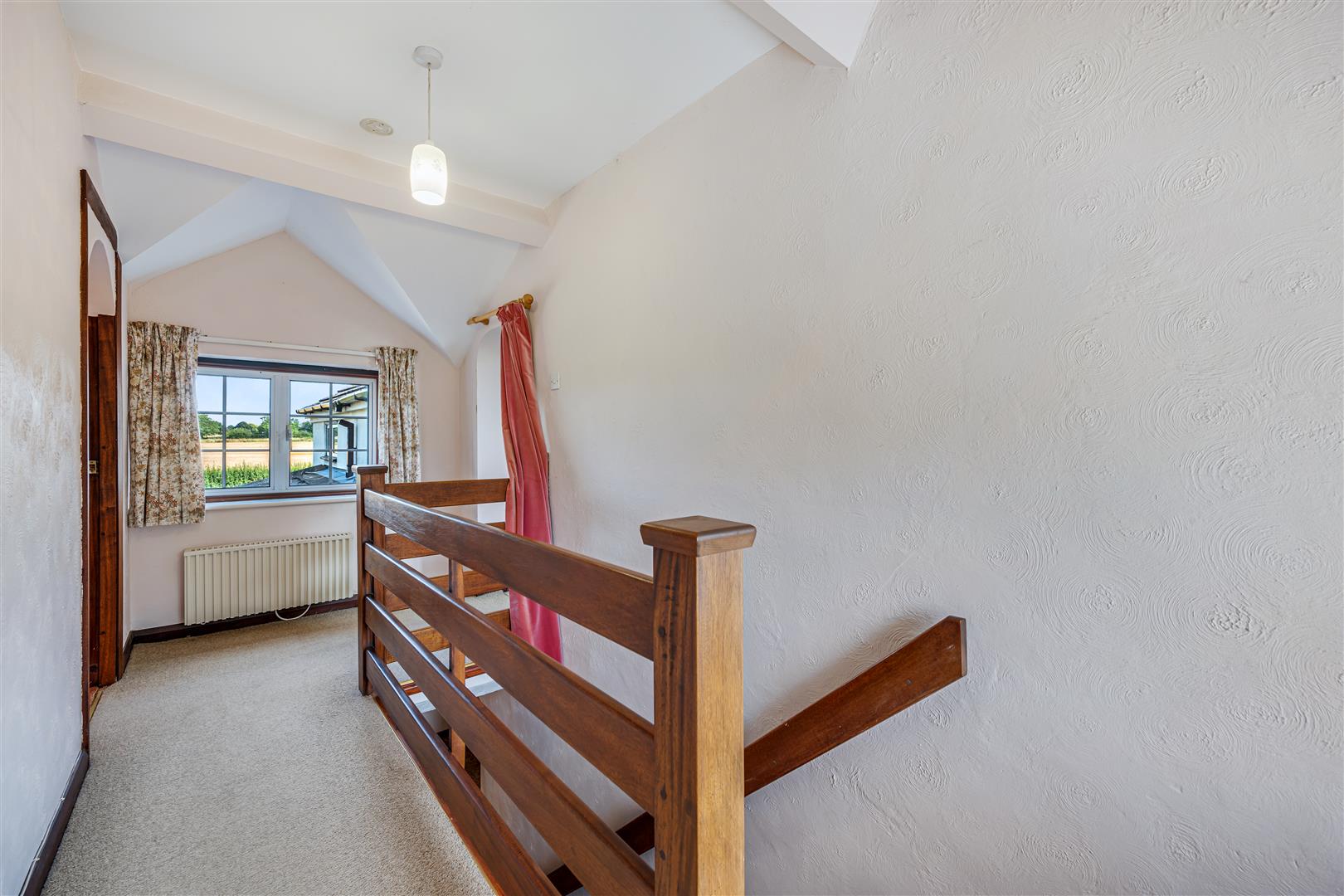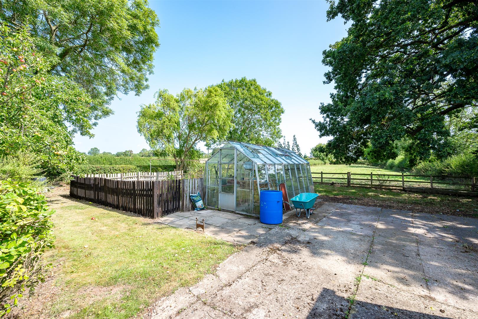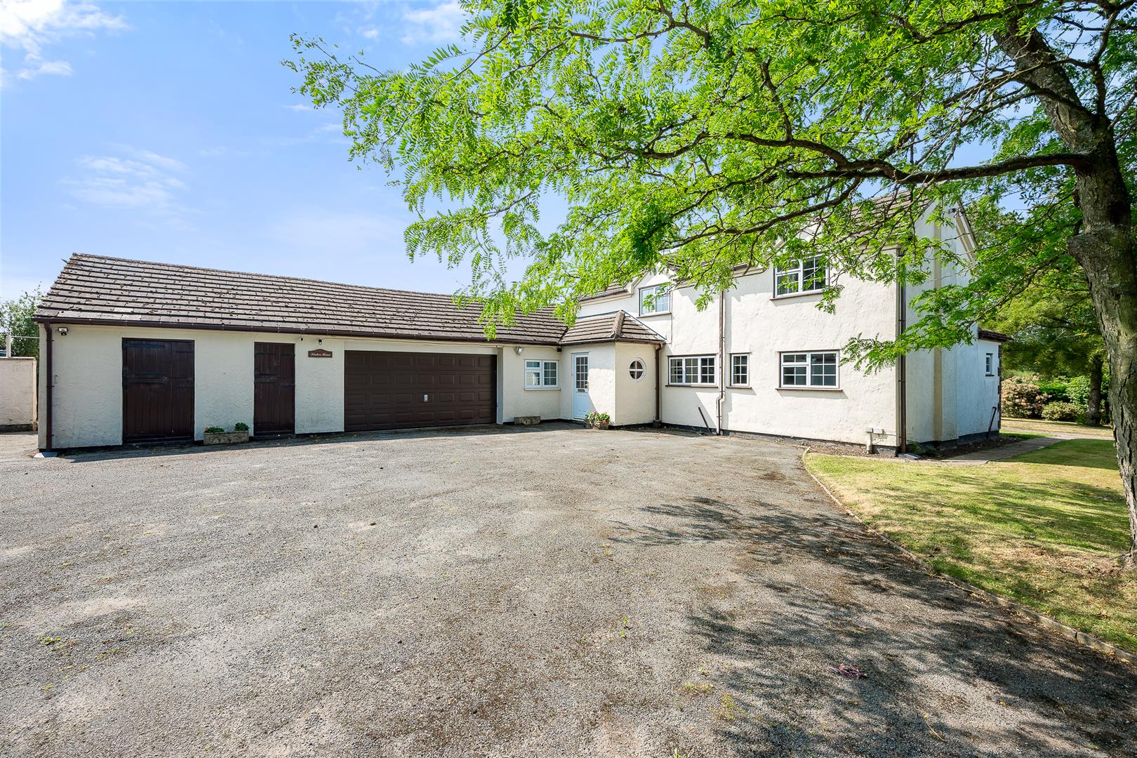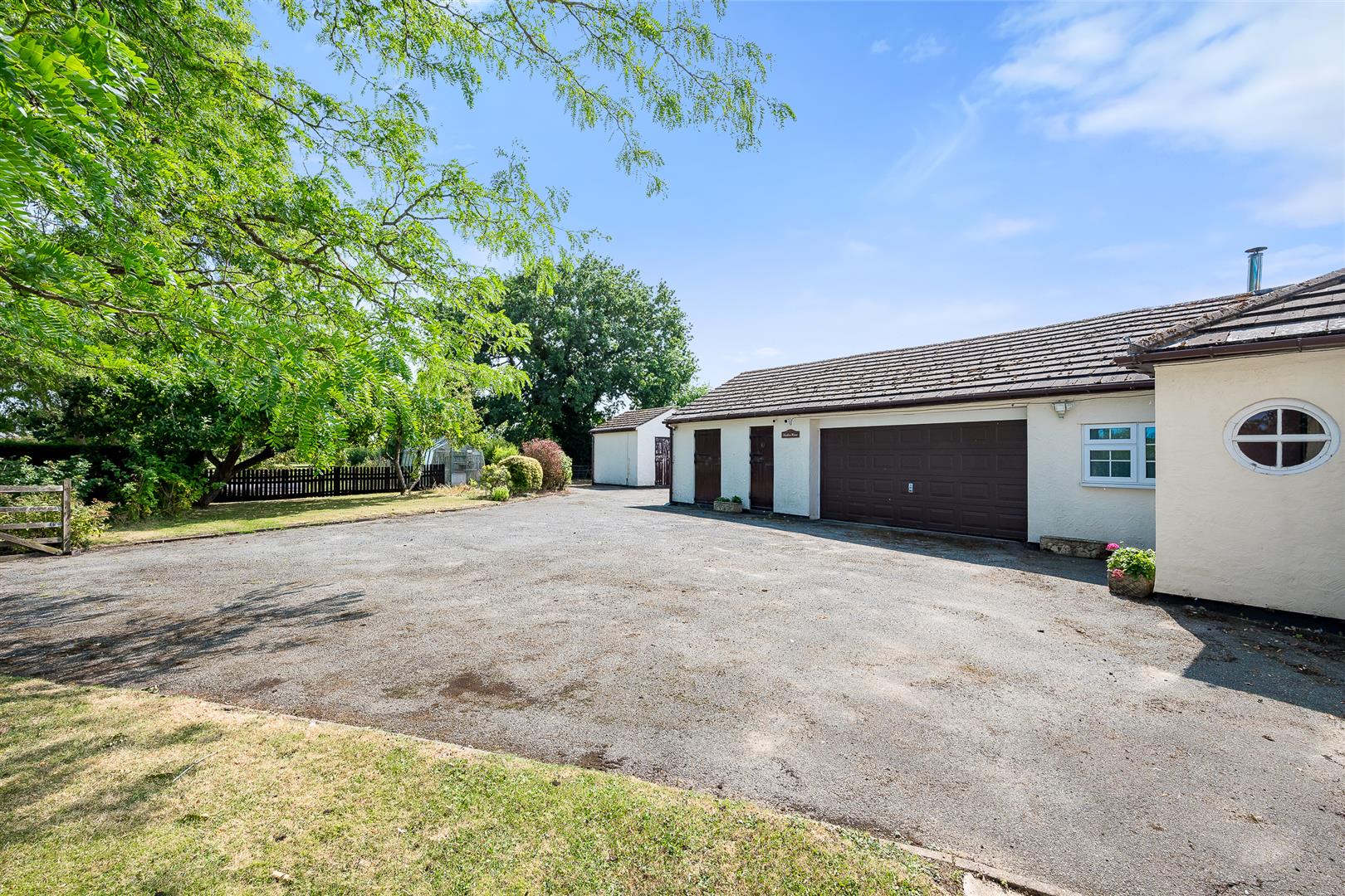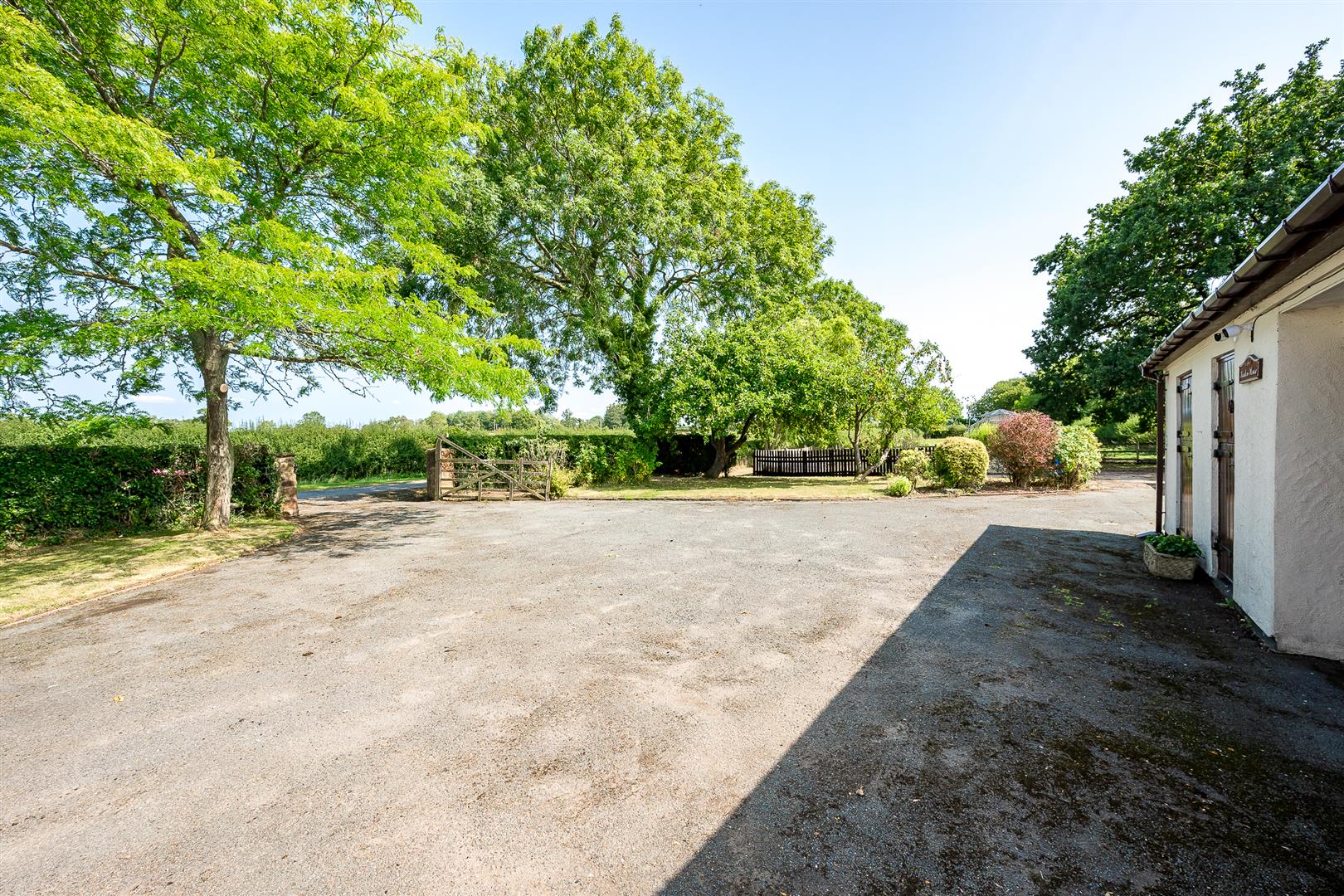 A wooden gated entrance with stone gate posts leads to a tarmacadum parking area, with room for numerous cars. This lies to the front of the house where the attached garaging/outbuildings lie. The gardens wrap around the house and consist of a large area of level lawns with mature shrubs and specimen trees, mainly bounded by hedging. A stone path leads around the gable end to a stone al-fresco dining area off French doors from the living room. There is a second set of doors off the south westerly facing conservatory to a second terrace. Within the garden is a vegetable patch with a Green House and Garden Store. A gate within a post and railed fence leads from the garden to the smaller paddock to the east. The two larger paddocks are accessed from the other end of the garden. All of the paddocks have water and are separately gated entrances off the lane. Attached to the house is a double garage with workshop behind and three further attached workshop/store rooms.