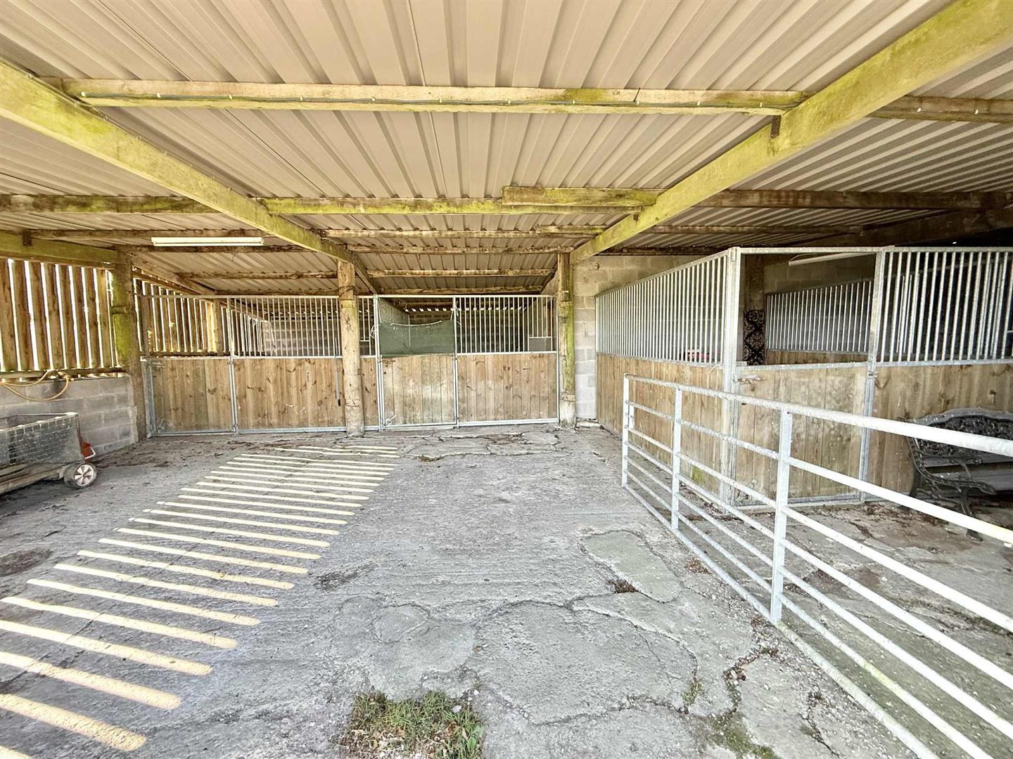 Equestrian facilities include four stables, a tack room, two barns and a large concrete yard, providing excellent space for equestrian use and storage. The stable block and tack room, together with the smaller barn, have both benefitted from recently replaced roofs. The land extends to approximately 8 acres of good quality grazing, is well fenced, and enjoys convenient access directly from the stables and barns.