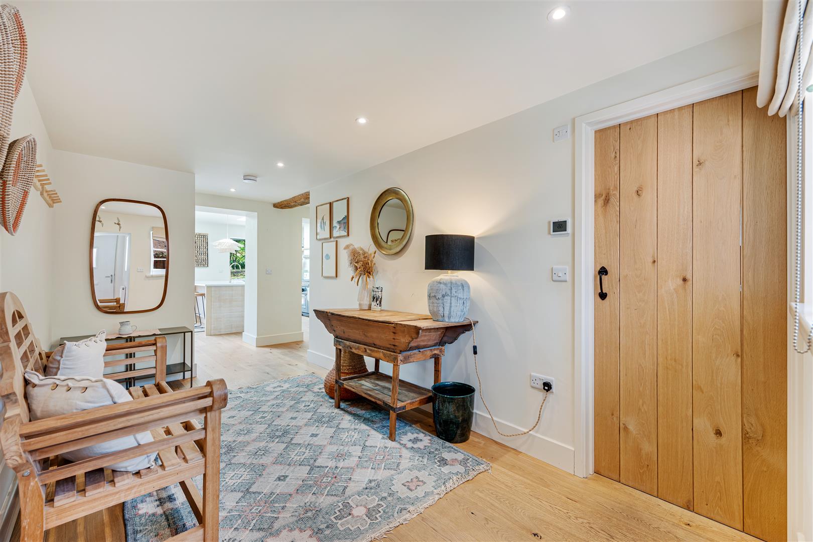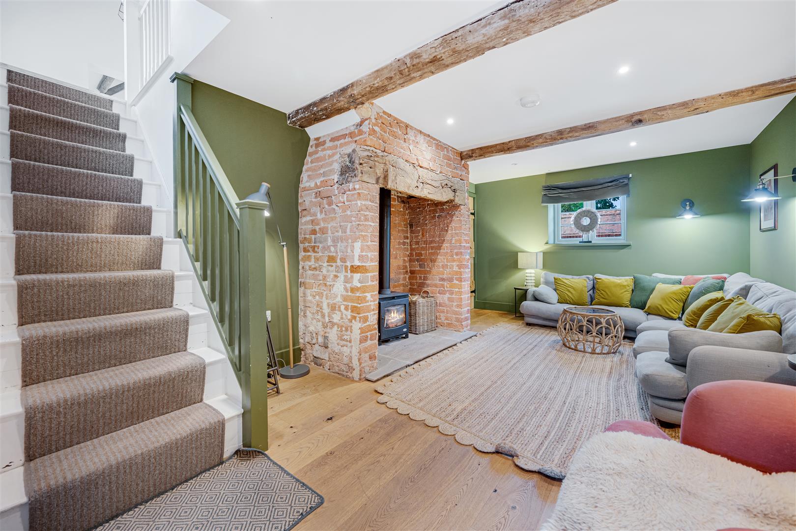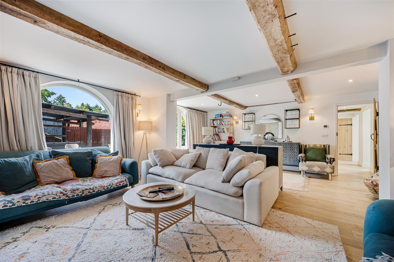 An additional spacious living room is well positioned with restored original timber beams and direct access to the rear patio, through a glazed arch door.