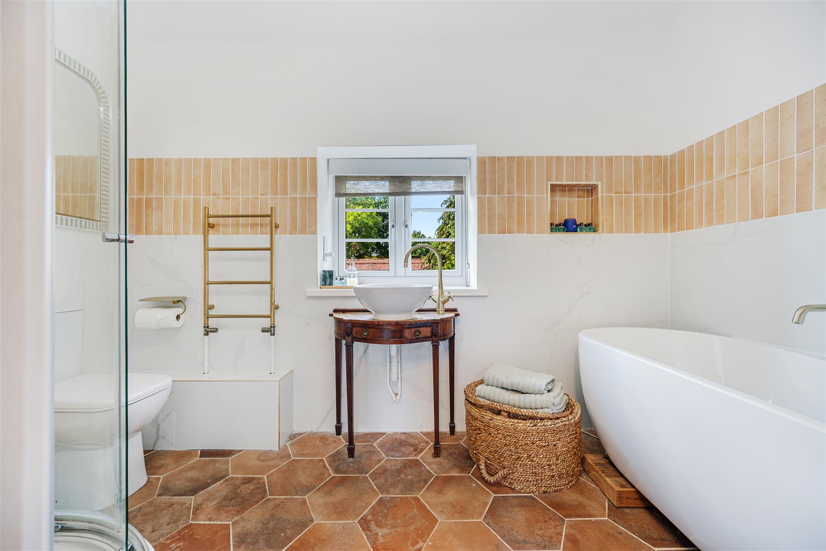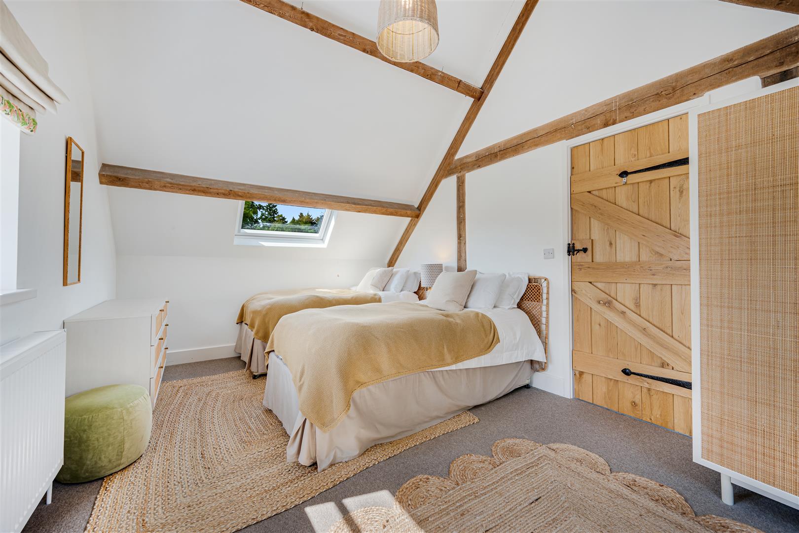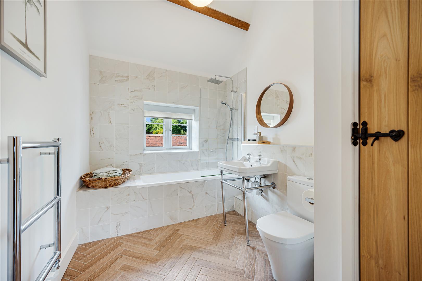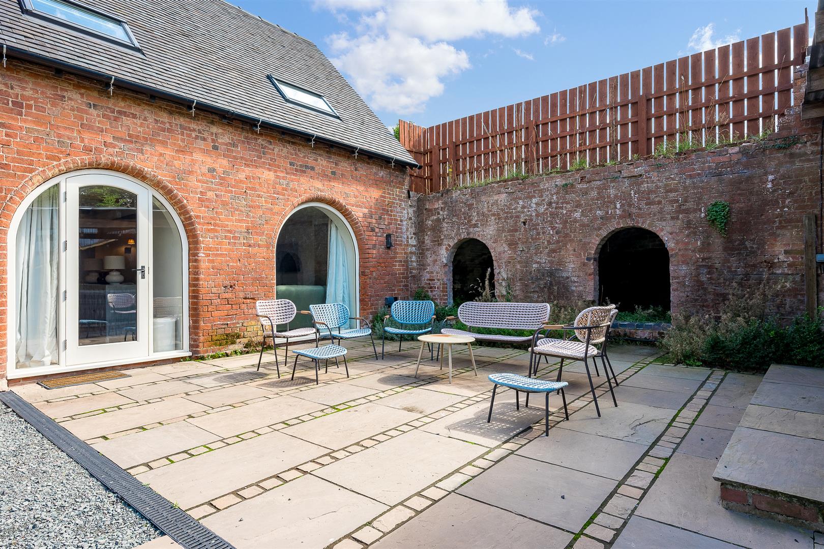 An additional spacious living room is well positioned with restored original timber beams and direct access to the rear patio, through a glazed arch door.