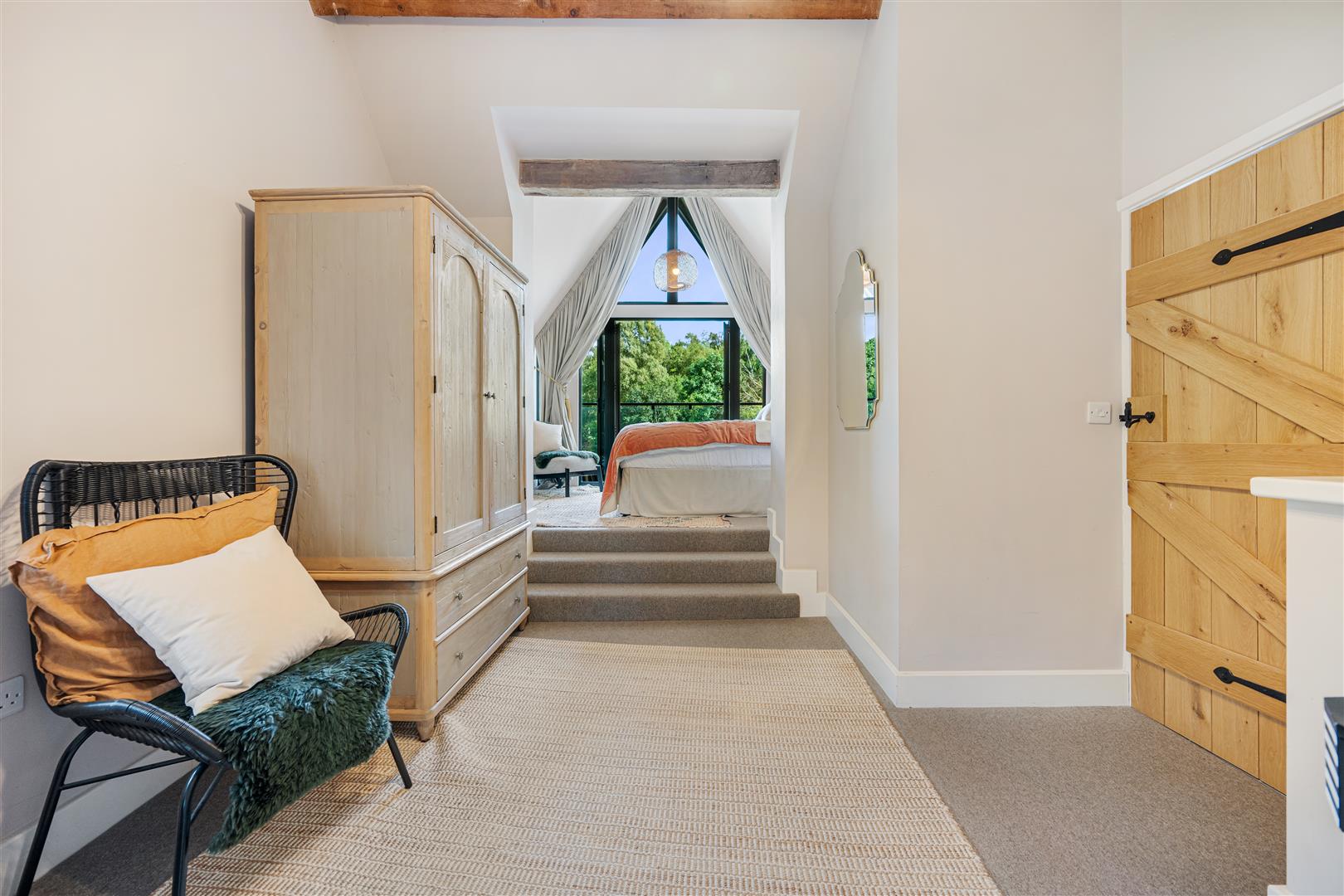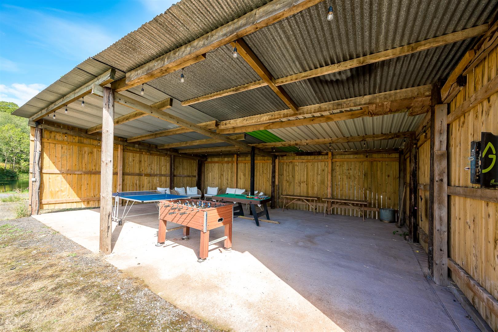 Elevated from the house, an expansive, level lawn provides ample opportunity for family sports, with versatile open fronted barn, currently configured as a games and relaxation area.