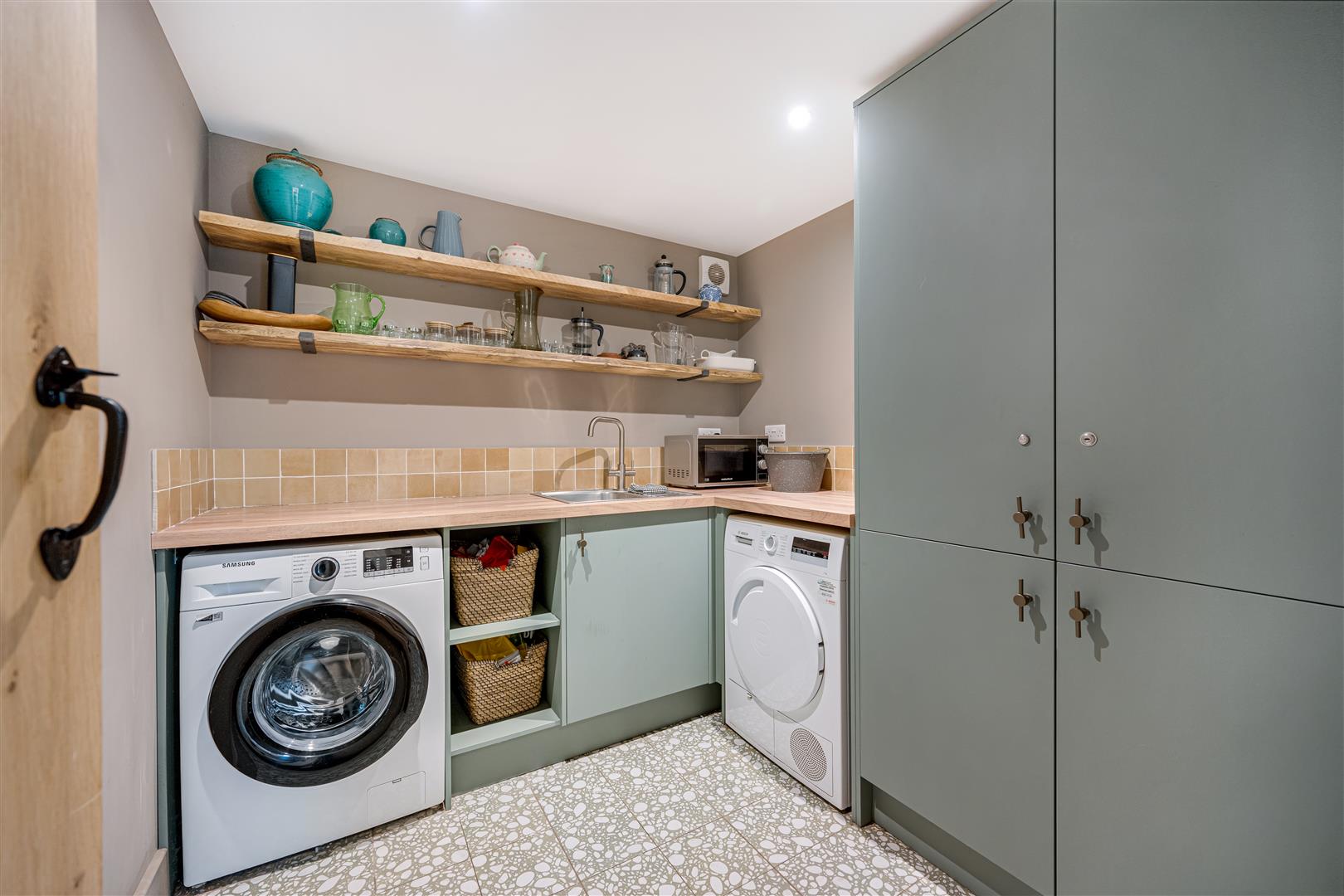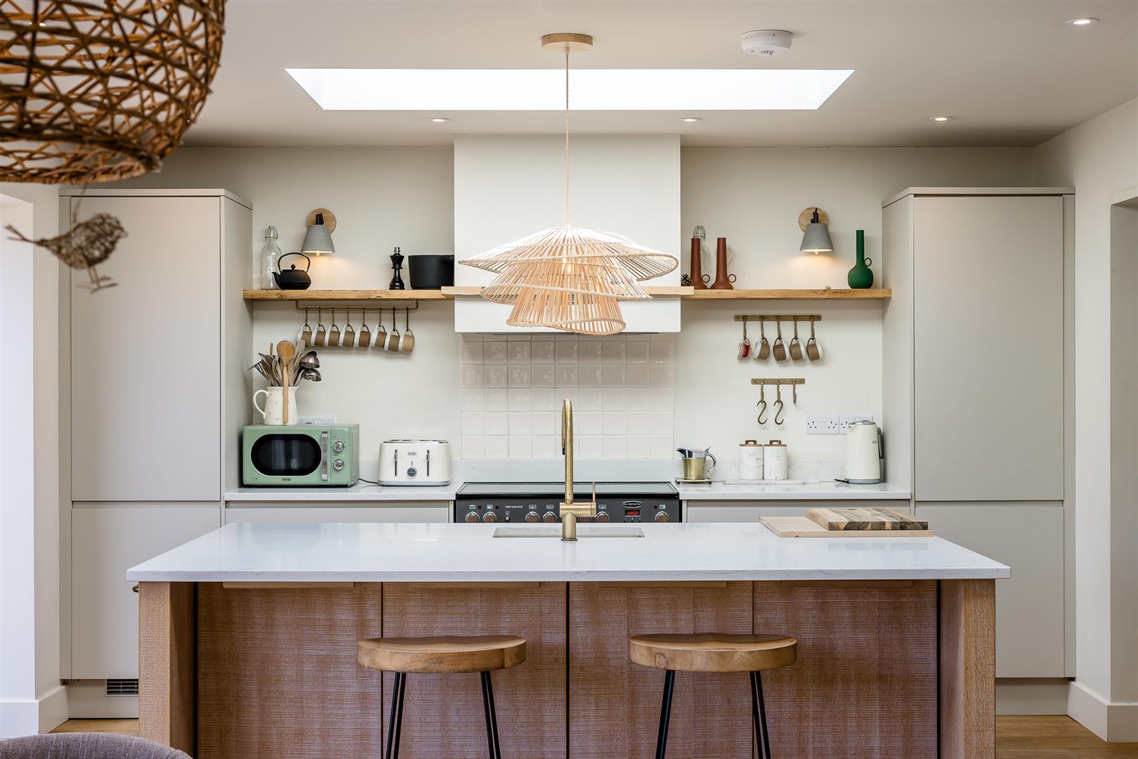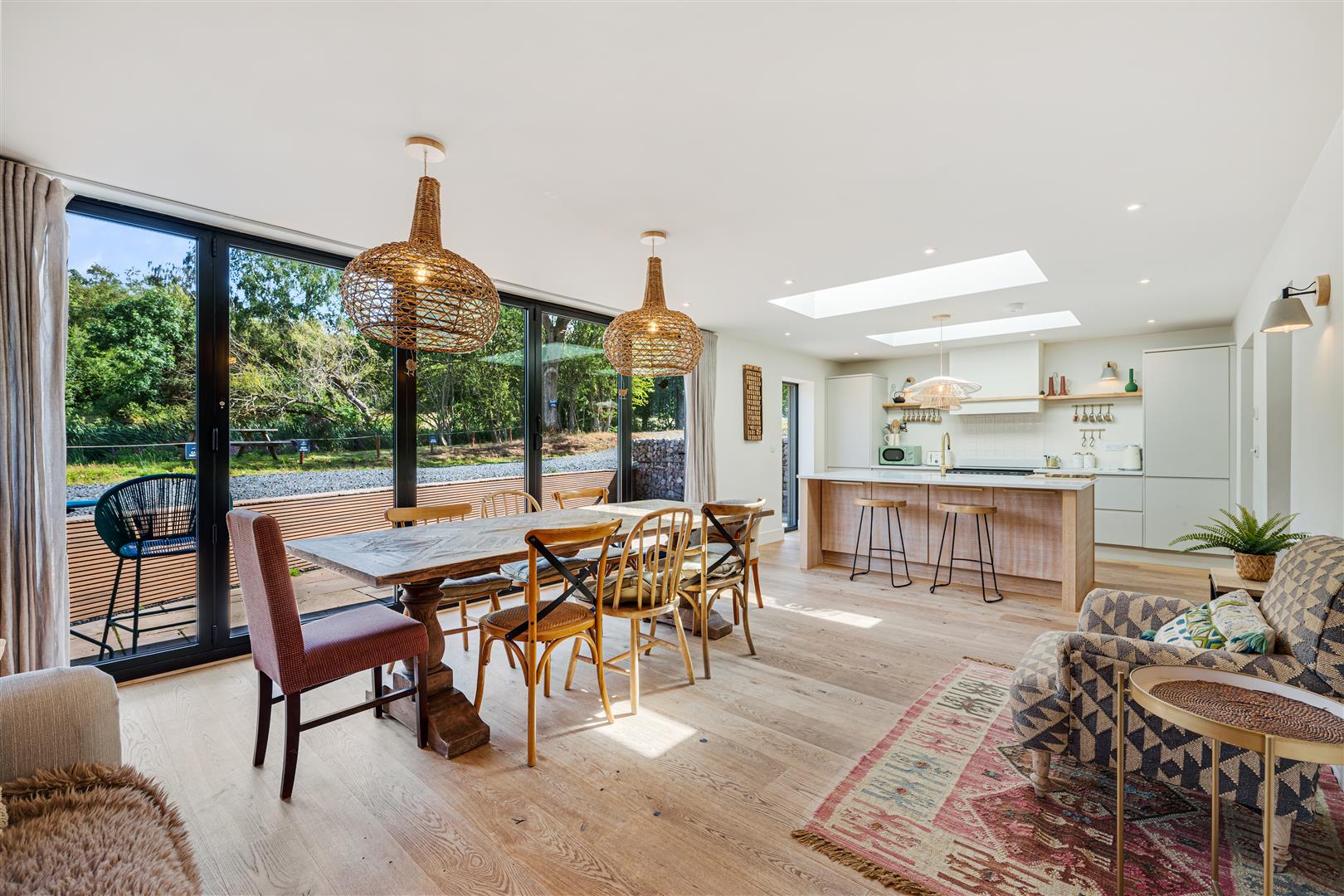 Following a full renovation in 2022, The Golf House encompasses spacious accommodation and is finished to an exceptional standard throughout. The handsome home opens into a wide hallway with cloakroom and a well-equipped utility room offering ample storage. A well-proportioned sitting room features a large Inglenook fireplace with log burning stove, leading to the open plan kitchen and dining area.