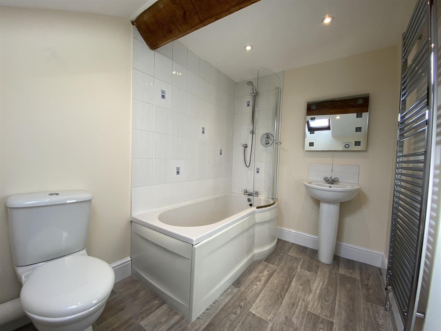 Stairs from the kitchen lead up to the first-floor area where there are two bedrooms. The upstairs is carpeted throughout. The master bedroom is large with a walk-in wardrobe and an en-suite bathroom with a bath and shower over, French windows to the rear and circular window to the front elevation. The second bedroom is again of a good size and is serviced by a shower room off the landing.