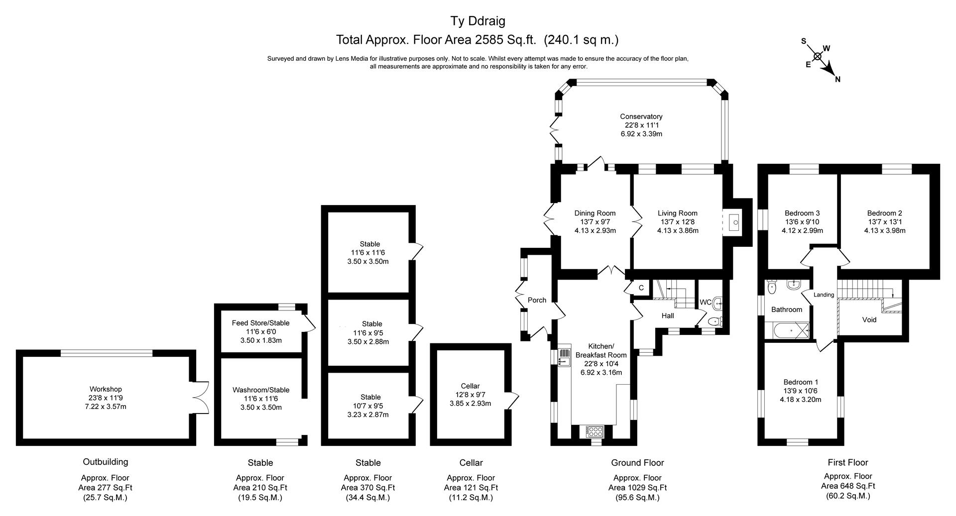A second gated entrance leads through to the equestrian area, with parking for more cars and trailer/horse box and a timber stable block housing three stables. Beyond this block is a second timber building housing the fourth stable/wash box and a store/feed room. Lastly there is a large timber workshop ideal for more storage or a large hobbies/work from home room.